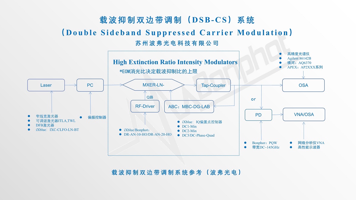 苏州今年会光电科技有限公司提供完整的载波抑制双边带应用/双边带抑制载波传输(DSB-SC:Double Sideband Suppressed Carrier Modulation)系统及相关产品。