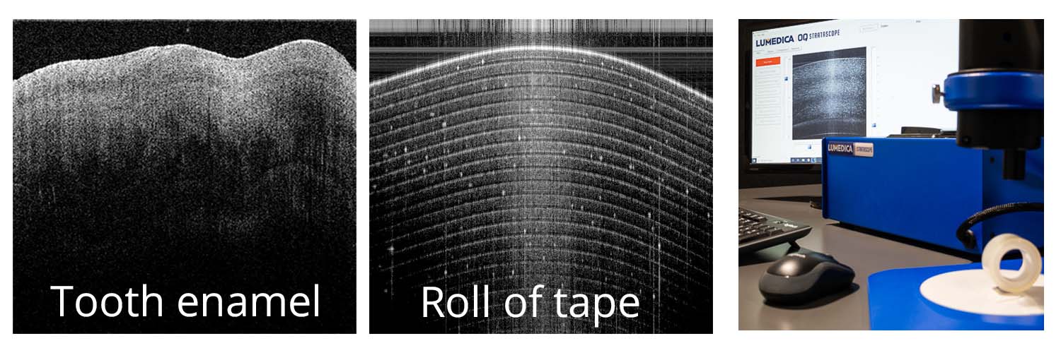 OCT可以测量层厚度,识别空隙,并绘制地形图。例如:汽车油漆的厚度和均匀性、药丸涂层和其他保护涂层。OCT也可用于防伪造指纹扫描仪,以验证或授权设备访问。