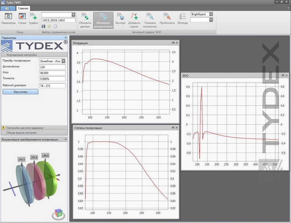 TYDEX开发了TWPC,用于在宽范围内转换任何波长的辐射偏振。 仪器随附的专用软件可以计算转换参数和限值。
