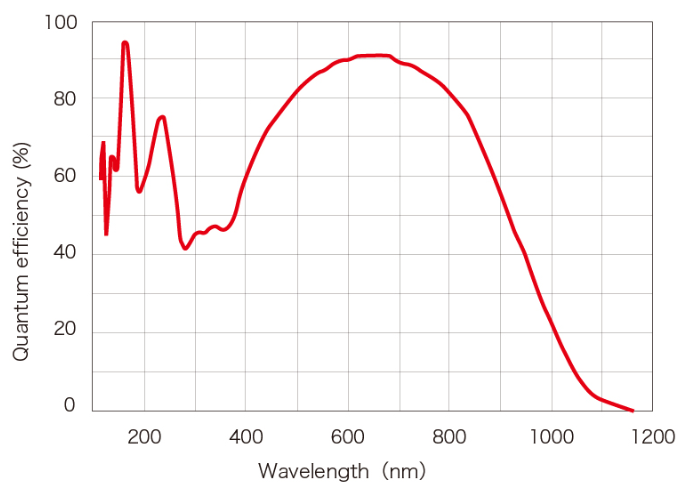 C8000-30使用滨松公司制造的超高灵敏度背照式CCD,在紫外、可见光和近红外波段具有极高的量子效率。其在120nm处的高紫外灵敏度对半导体掩膜检测以及测量等应用十分有利。此外,近红外波段的高灵敏度可用于荧光测量、近红外激光二极管测量等等。