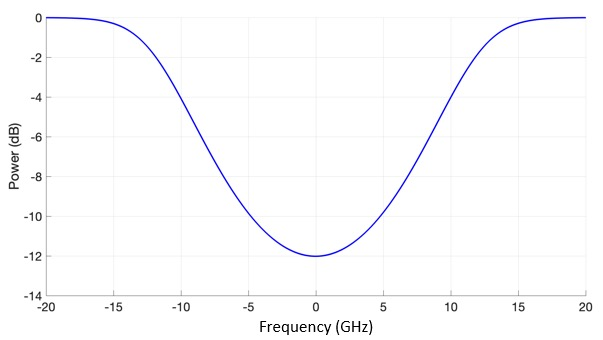 典型响应(IN ➙ OUT):具有改进的Q因子的平顶对称带通设计,可实现更好的选择性和更高的信噪比。 |