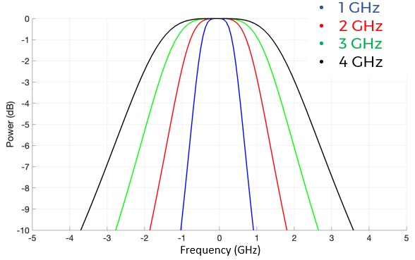 典型响应(IN ➙ OUT):允许传输特定窄带,抑制C或L波段中其他波长。提供从1 -4 GHz多个带宽选择 |
