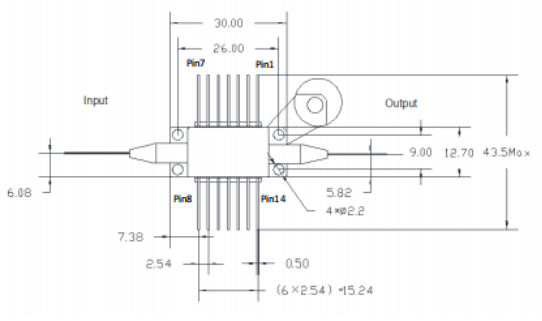 1550nm波段-25dBm饱和输出功率-35dB增益-蝶形封装-单模光纤-FC/APC接头 |